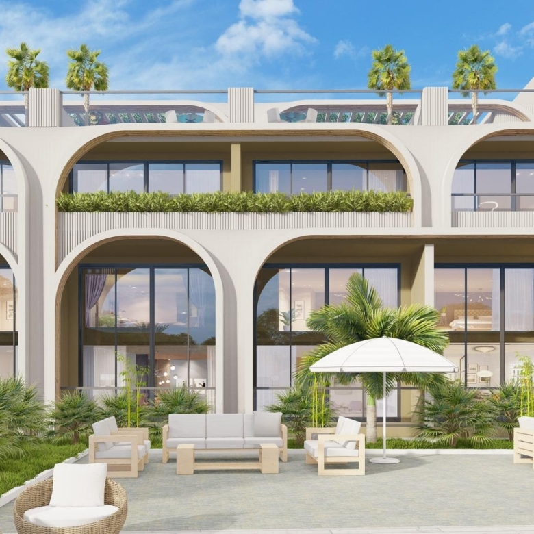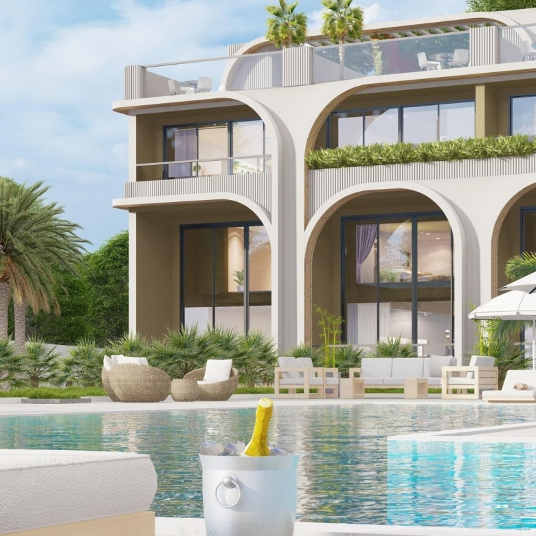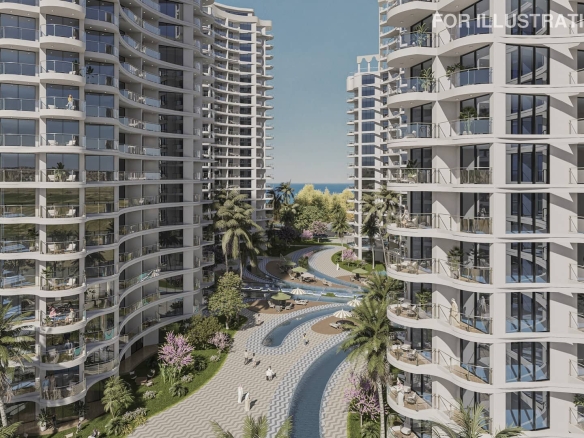 "Palm Jumeirah" is a breathtaking complex of 7 high-rise buildings with 24 floors each with stunning views of the Mediterranean Sea, inspired by the architectural style of Dubai.