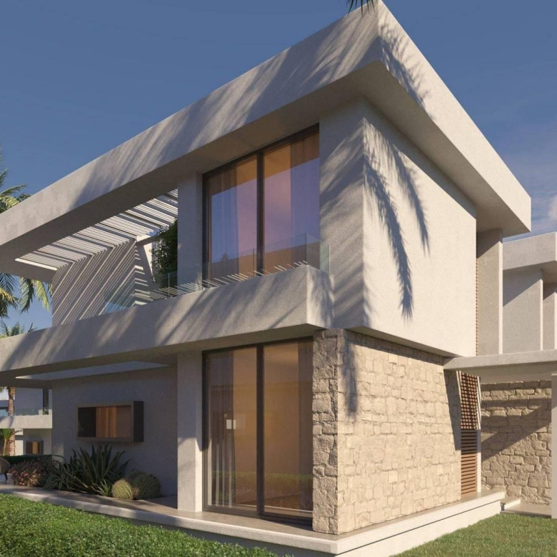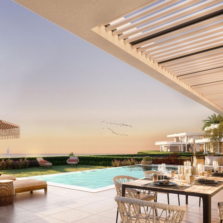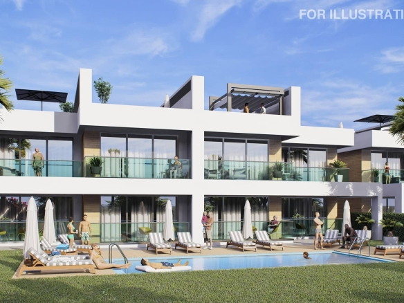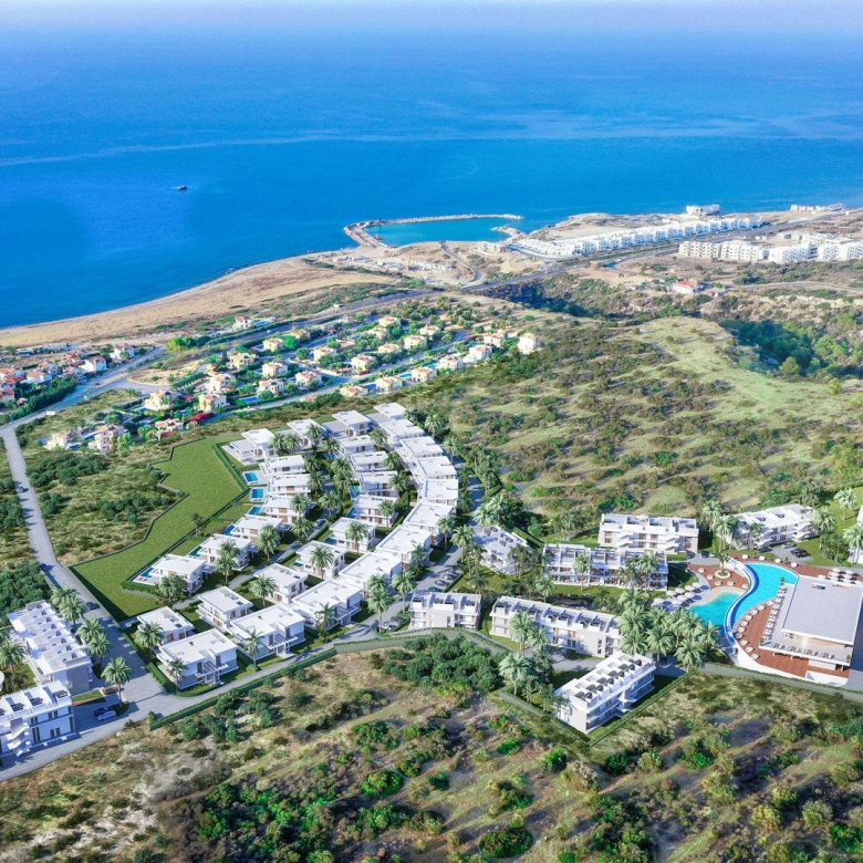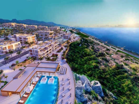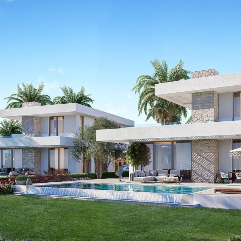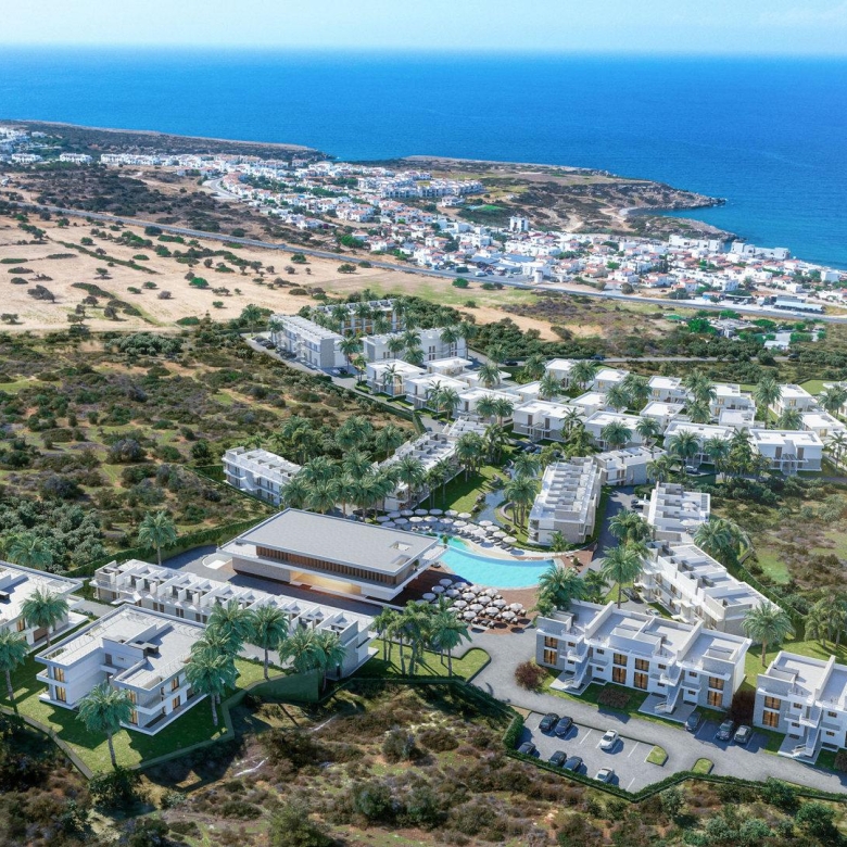 The "Caesar Blue Line Villas" complex is located near a sandy beach on the shores of the Mediterranean Sea. These luxurious all-inclusive seaside villas with Aqua Club complex are a true delight of Northern Cyprus.