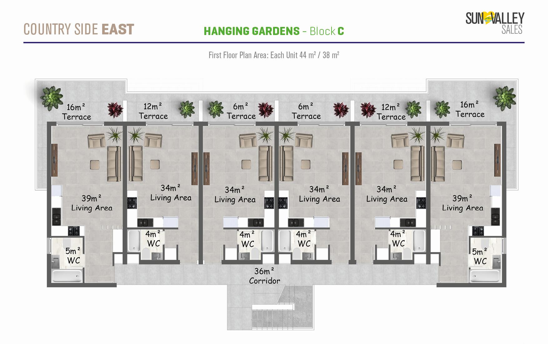 | C2 | Studio | Garden | 38 | 12 | 50 | – | – | – | RESERVED |