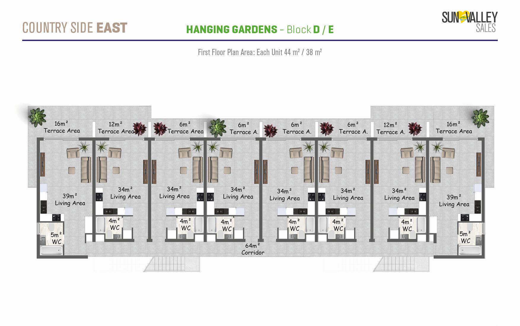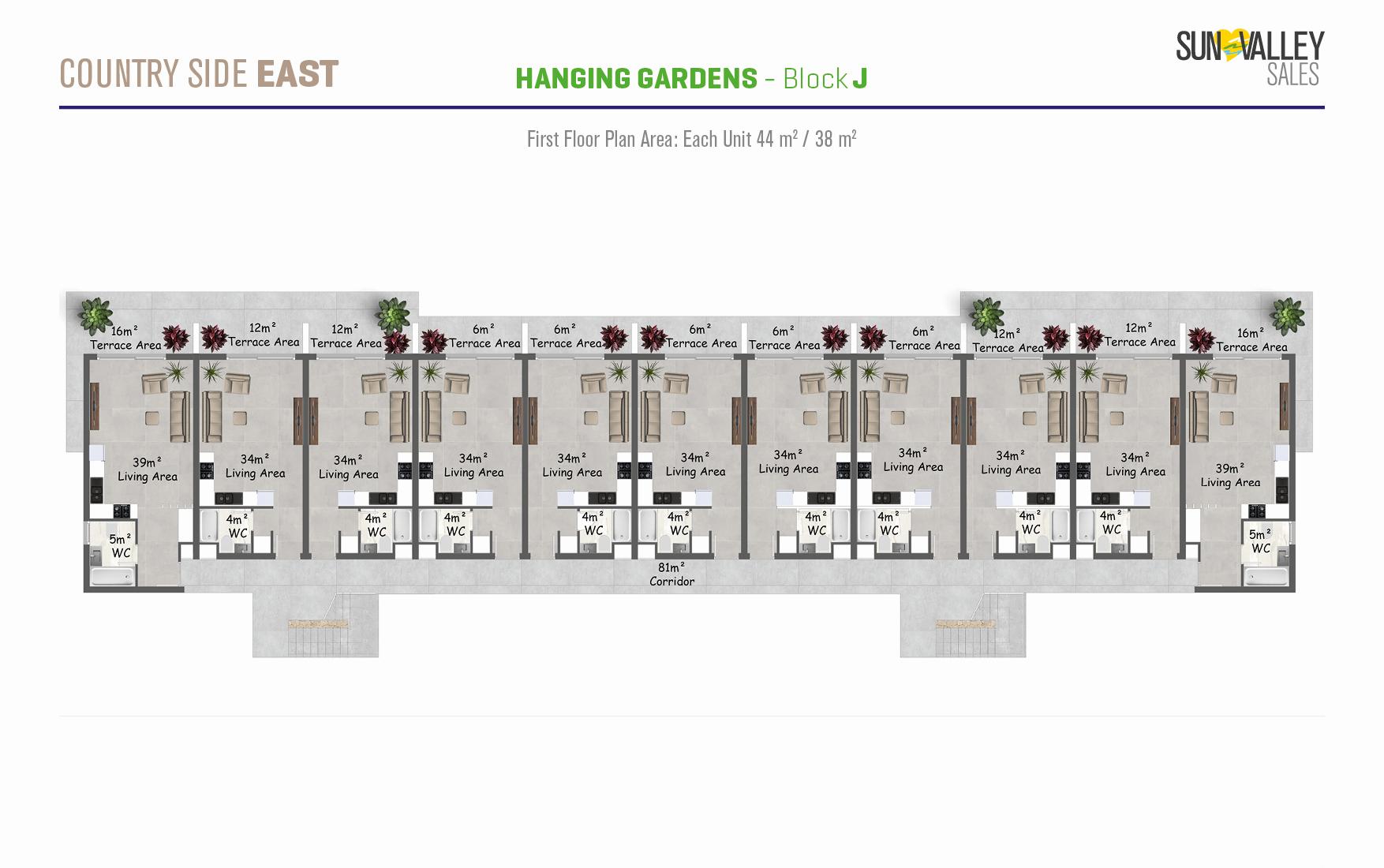 | E8 | Corner studio | Garden | 44 | 16 | 60 | – | – | – | RESERVED |