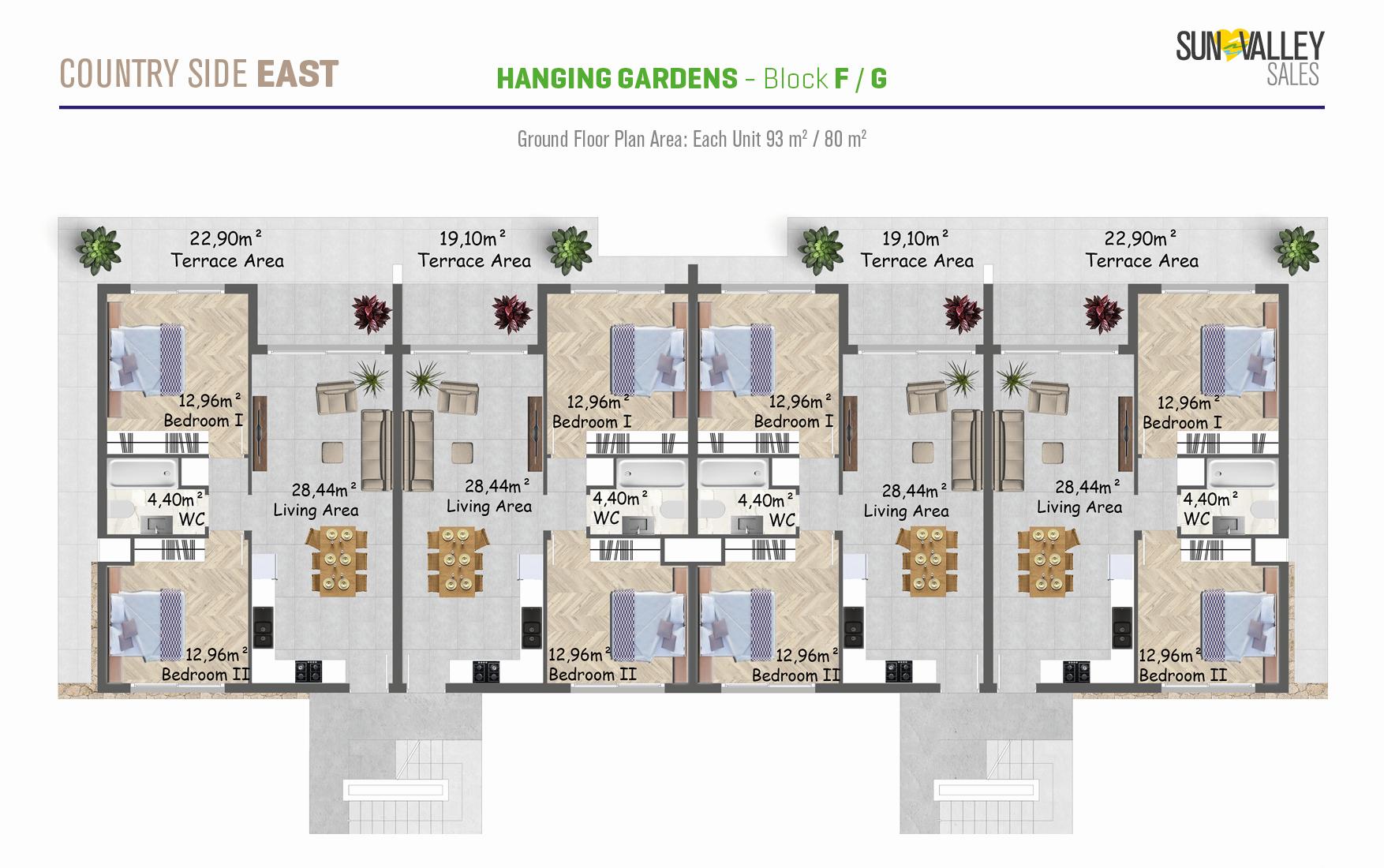 | F4 | Corner 2 bedroom | Garden | 75 | 22 | 97 | 12 | – | £362.375 | AVAILABLE |