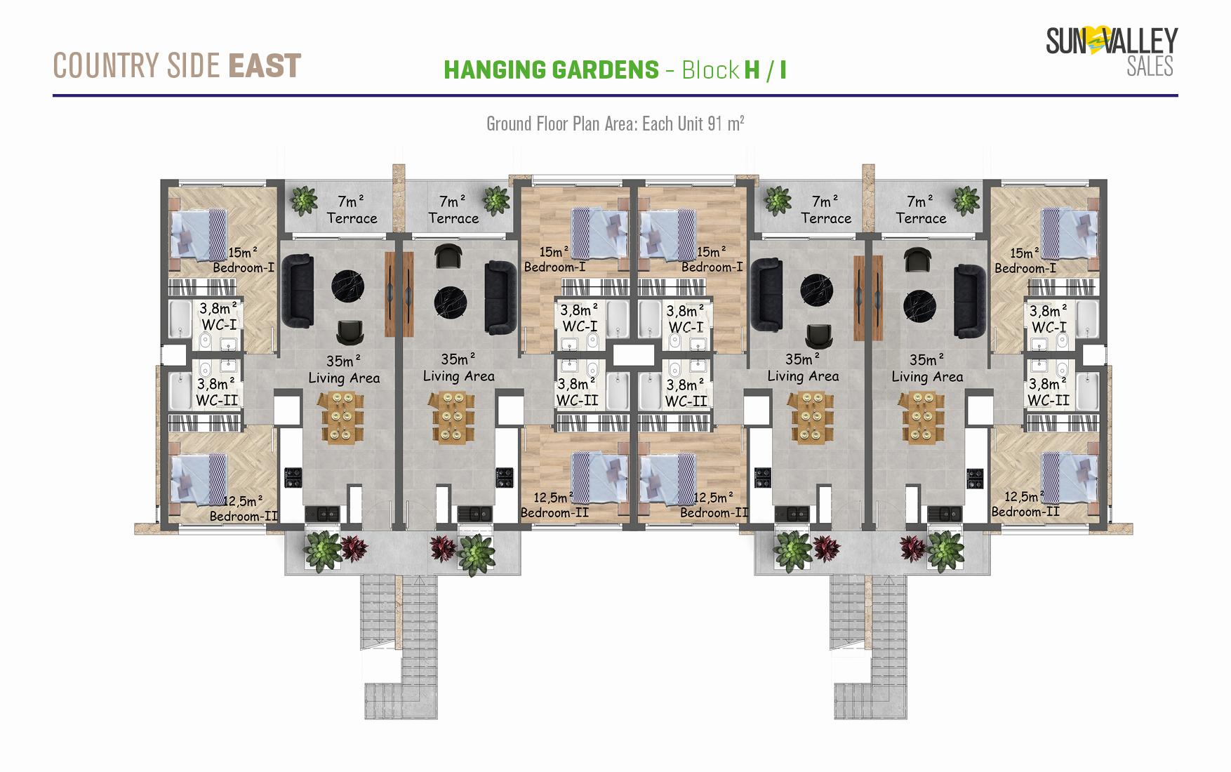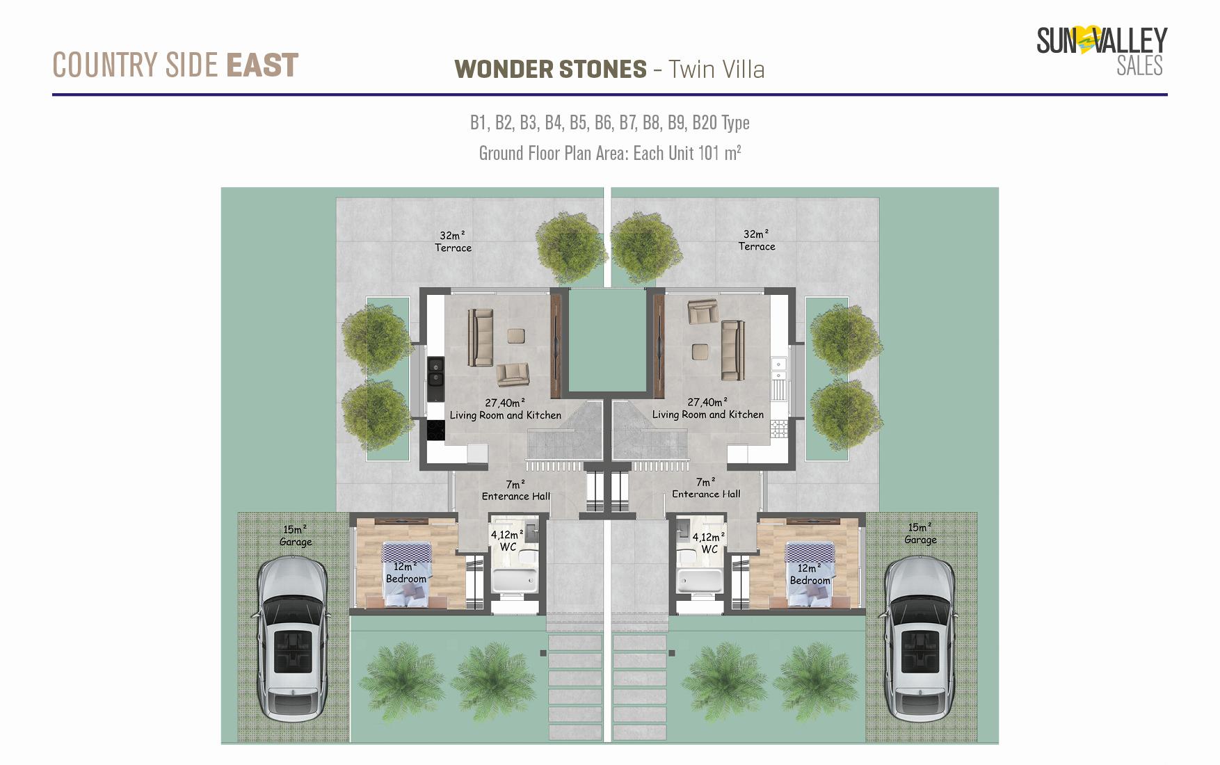 Sun Valley Countryside is a new neighborhood within Sun Valley Resort & Residency that will be located in the same Esentepe region as the entire project, next to a supermarket, pharmacy and its own beach, Sun Valley Beach & Marina.