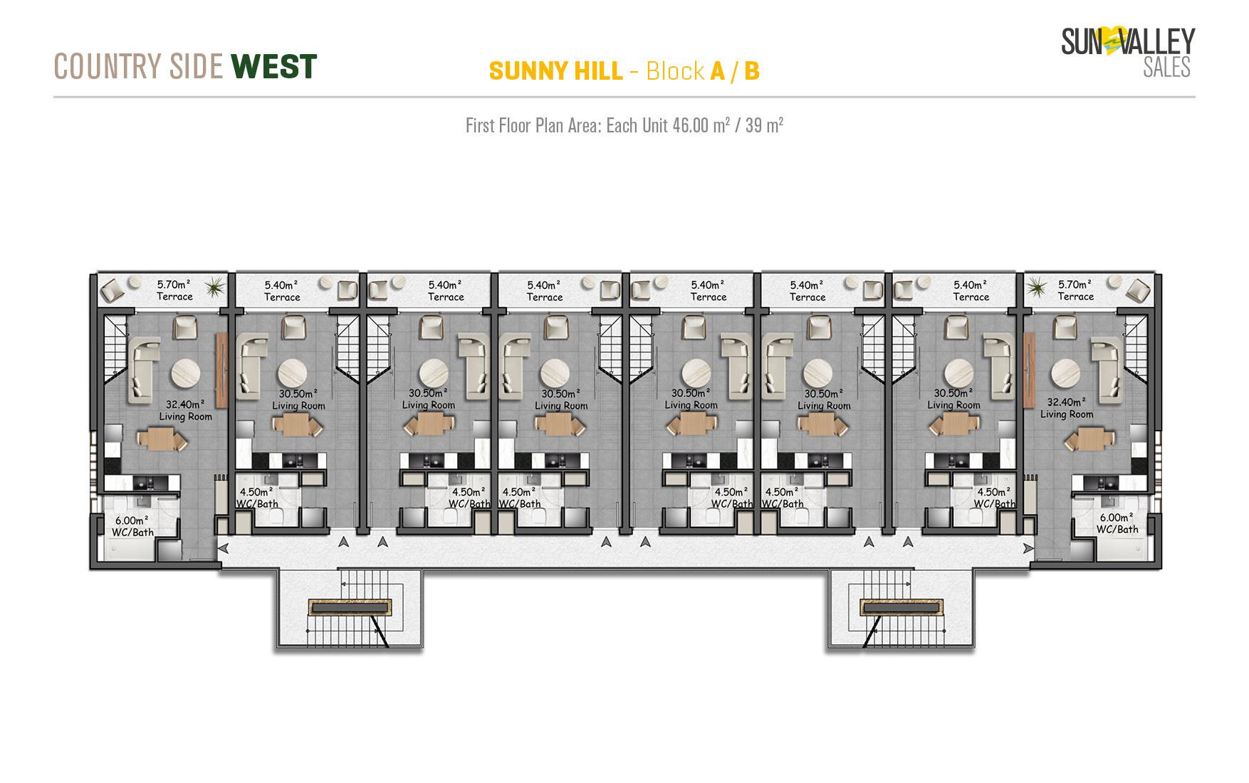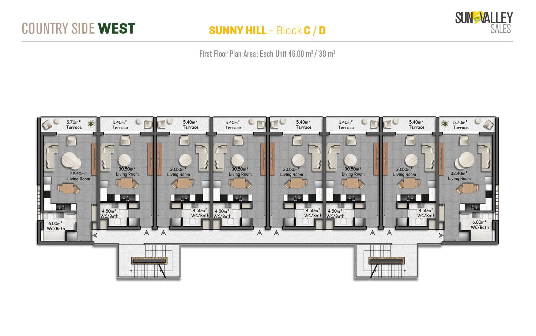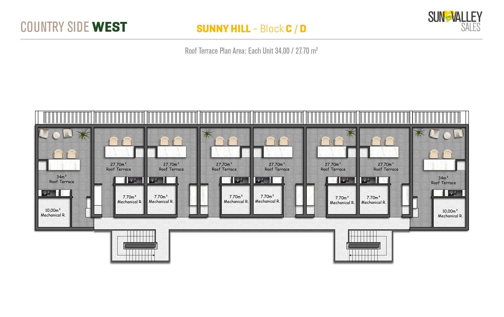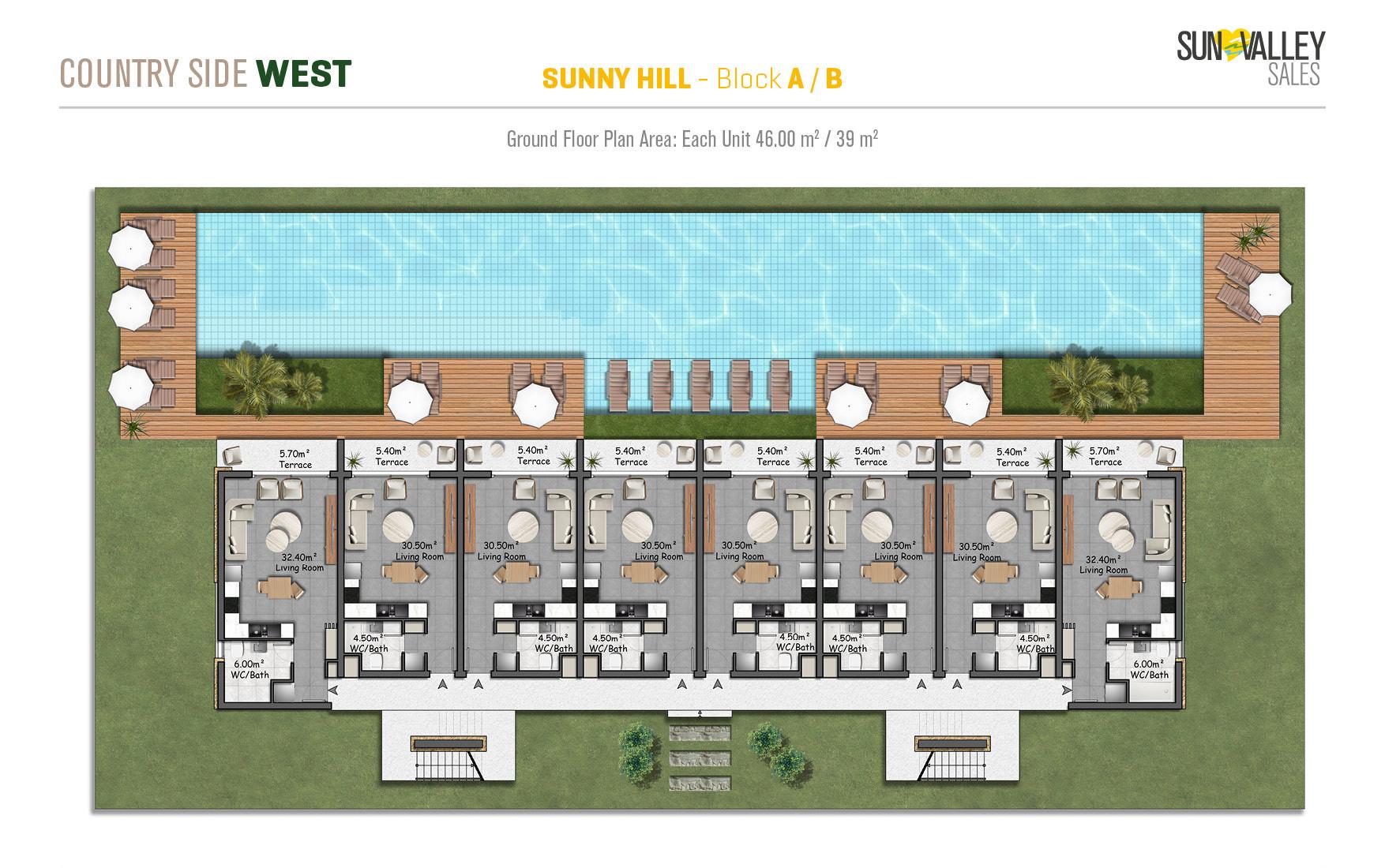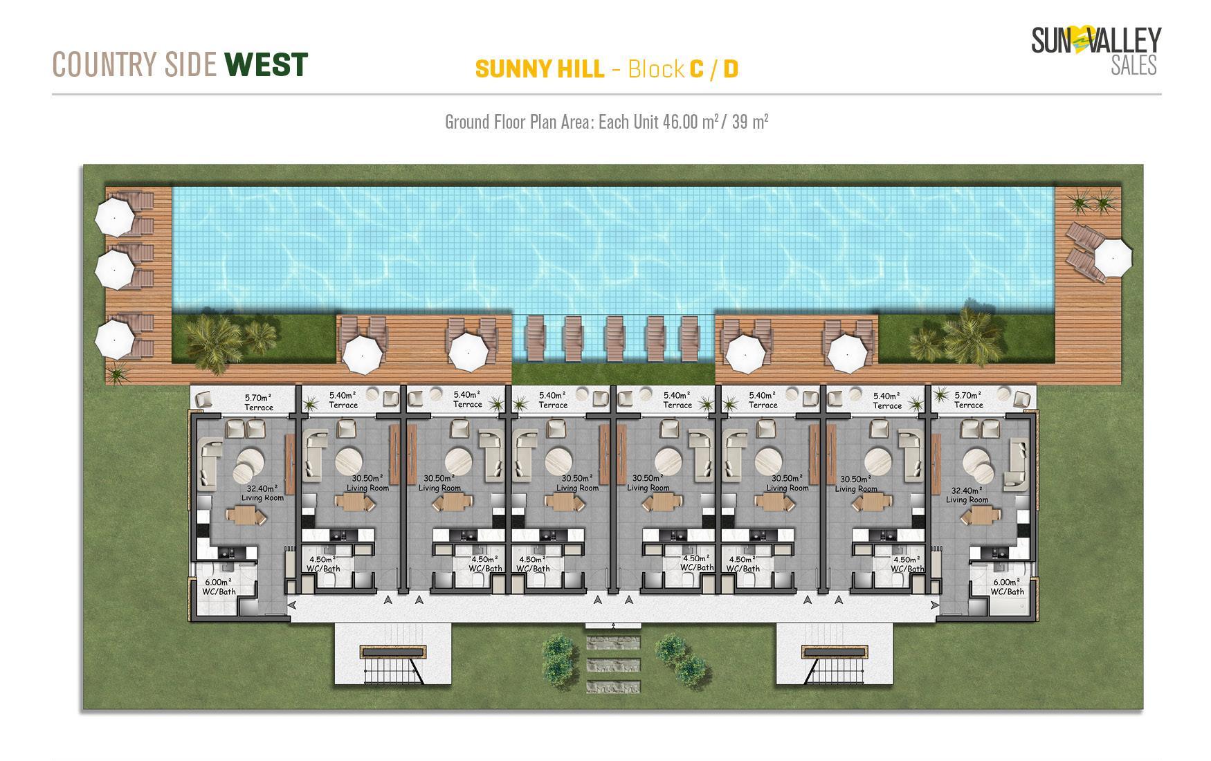 Nestled amidst nature and surrounded by tranquil azure hues, Sunny Hill Village occupies a unique and tranquil location. Residents can enjoy magnificent views and stunning landscapes while immersing themselves in a tranquil atmosphere. Each of these apartments in the complex has an infinity pool, which in previous projects has provided excellent investment returns and increased rental opportunities. In addition, residents of Sunny Hill Village have full access to the amenities of Countryside West, providing the perfect balance between privacy and community living.